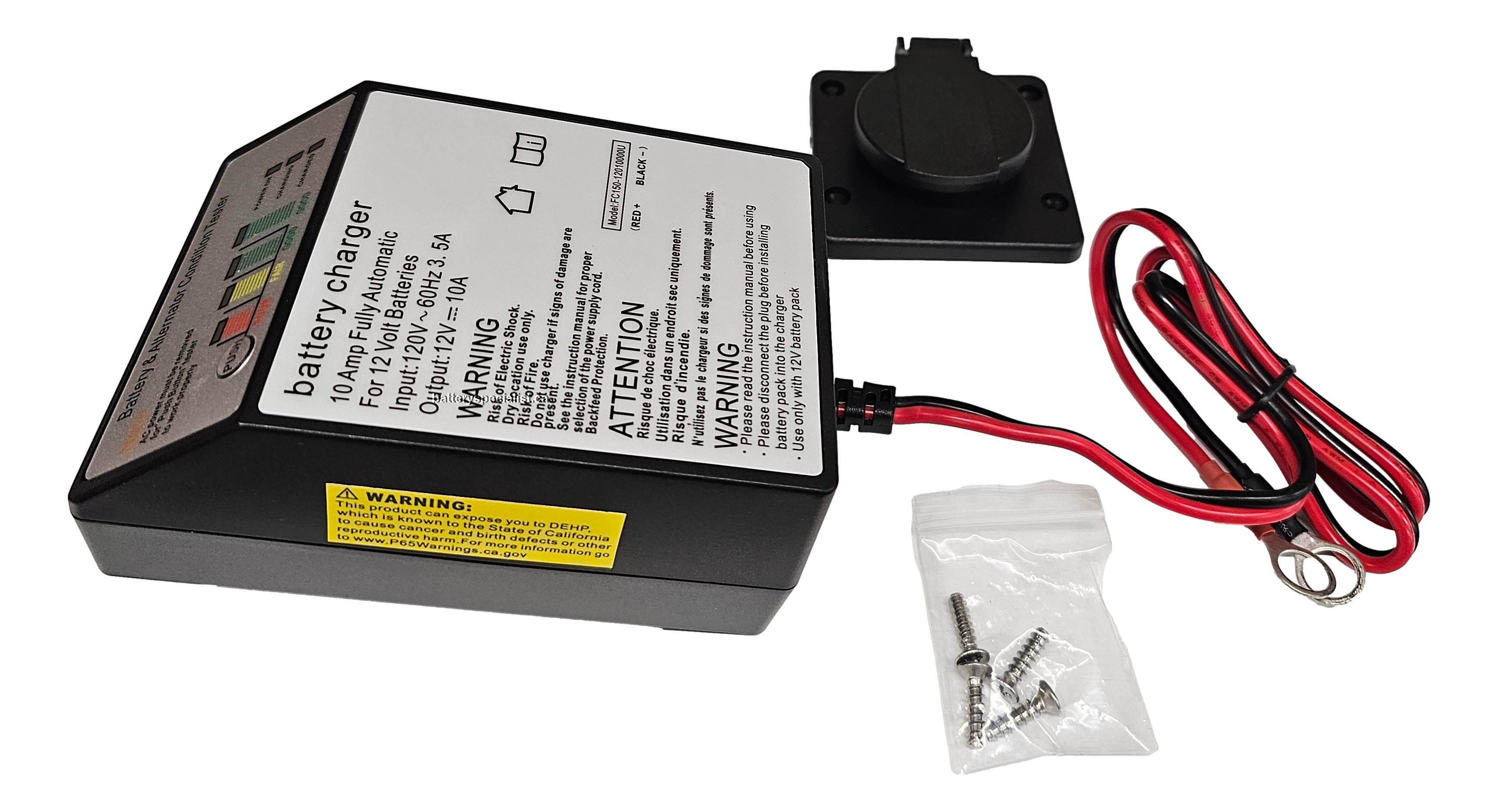 This is the replacement for the 5 Amp dump trailer charger. This new 10 Amp charger will get the job done faster.