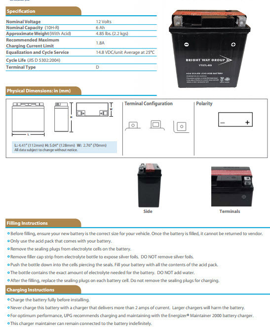 Our Adventure Power AGM dry charged series is the battery you are looking for. Includes acid pack for filling and charging by end user. Acid pack is contained in a thick poly bag for additional protection against spillage. Package conforms to DOT ORM-D standards and may be shipped ground.