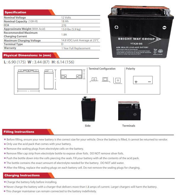 - Dry charged - Meaning you are responsible for activating & charging the battery