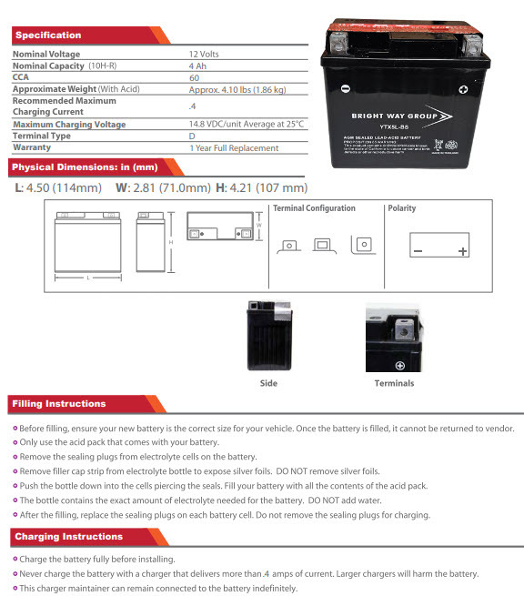 • Dry charged - Meaning you are responsible for activating & charging the battery